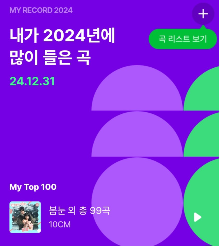 - 2024년 한 해 102,820분 동안 음악 감상. (멜론 기준. 타 사이트까지 포함하면 두 배 이상일 것으로 예상…)