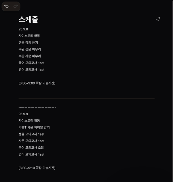 <쪽잠까지 적어놨던 스케줄표>