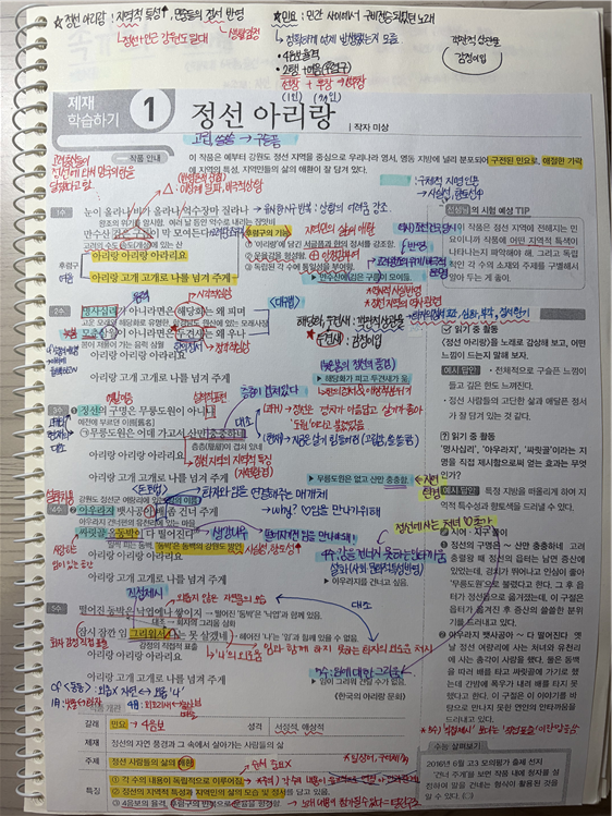여기서 학교 쌤과 학원 쌤의 필기를 다른 색으로 구분하는 게 중요합니다!